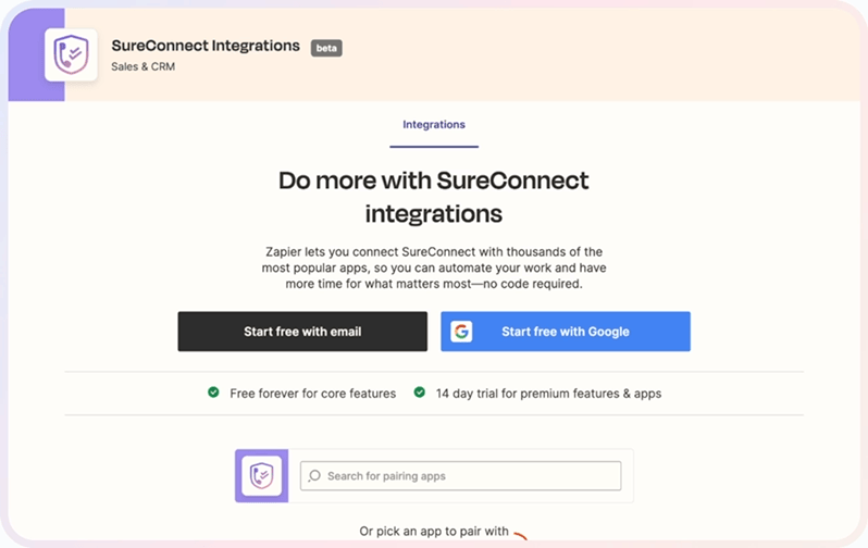 Integrating SureConnect.ai with Zapier is super easy and it involves following steps: